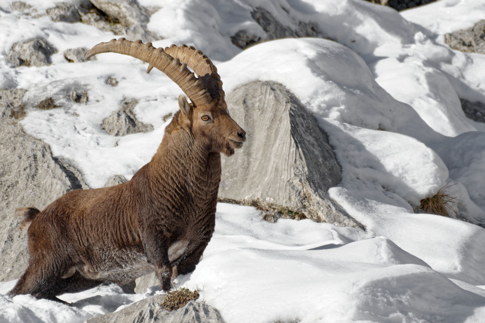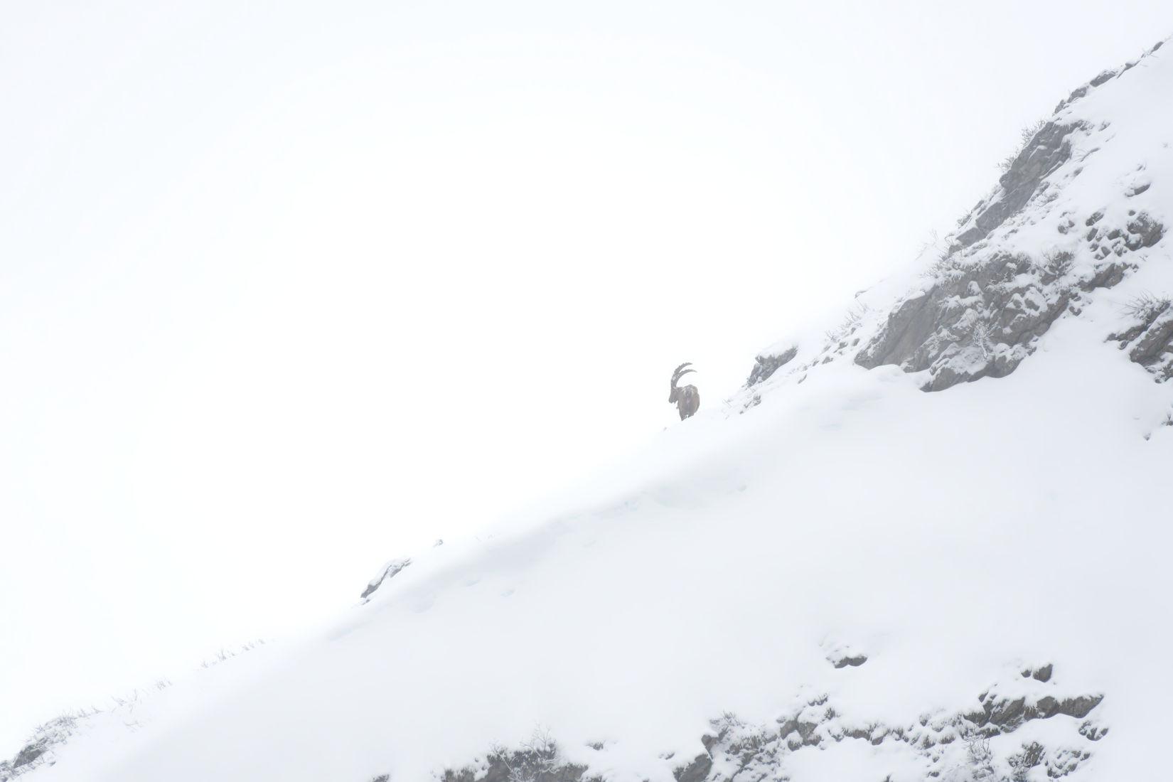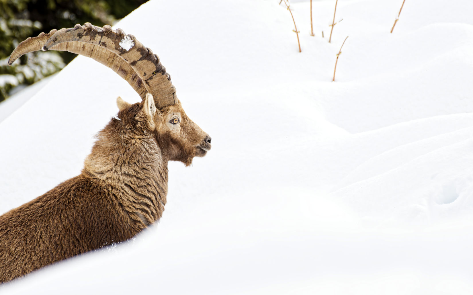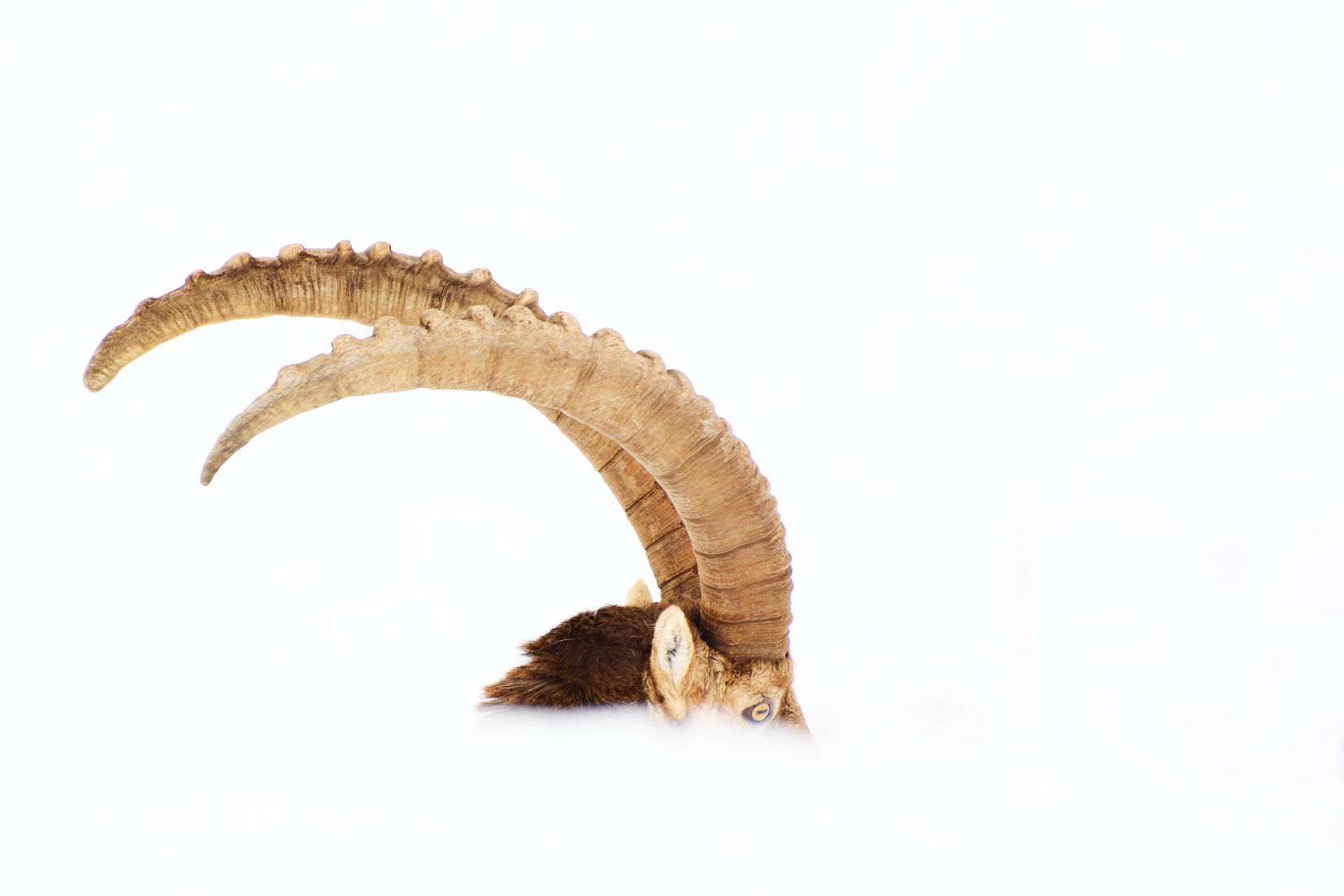 Il y eut deux cornes, courbées comme des arcs, puis lentement, émergeant d’une neige profonde,