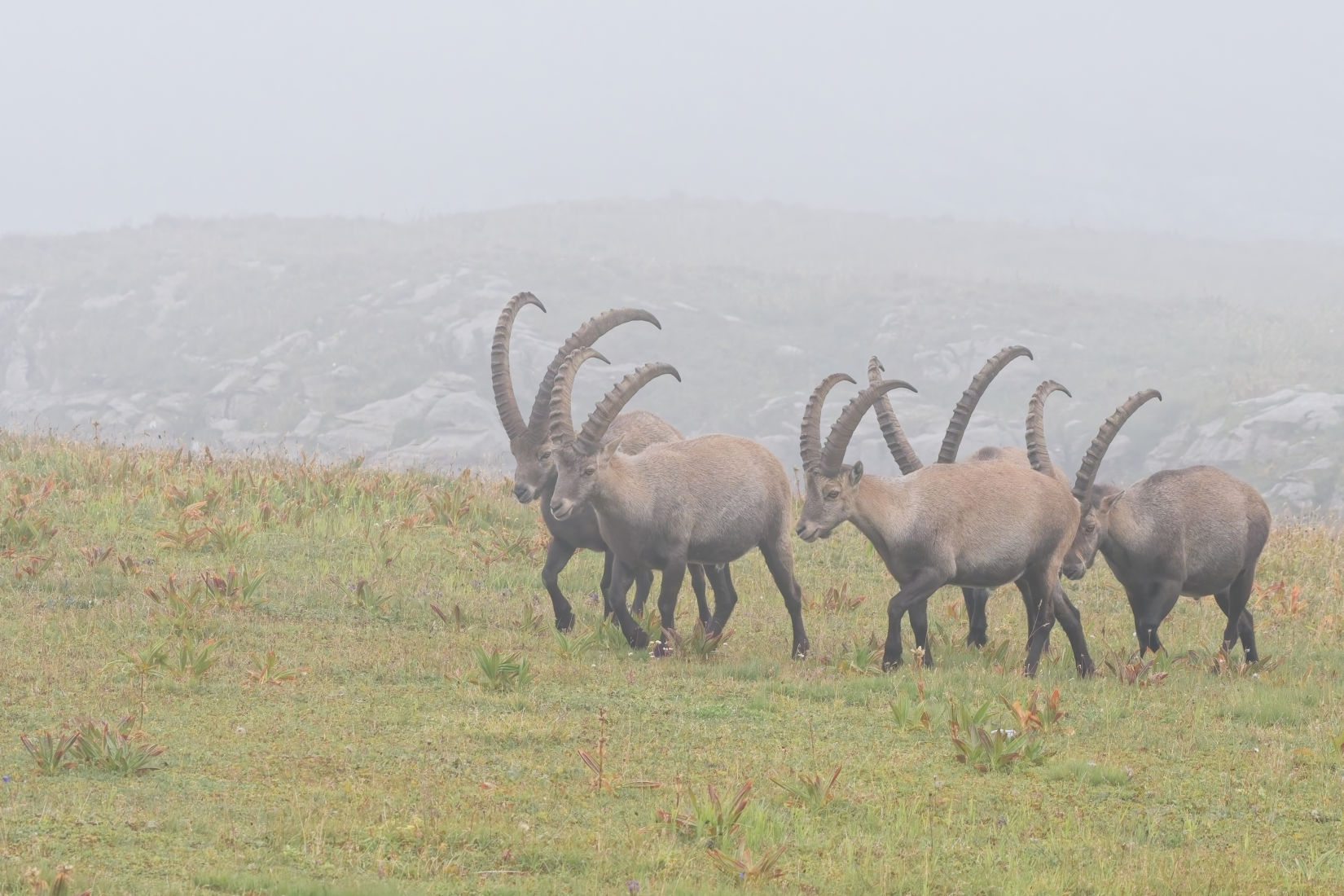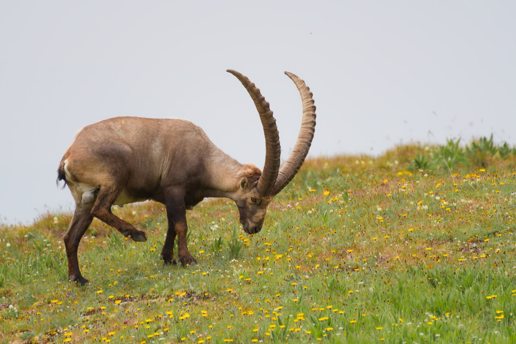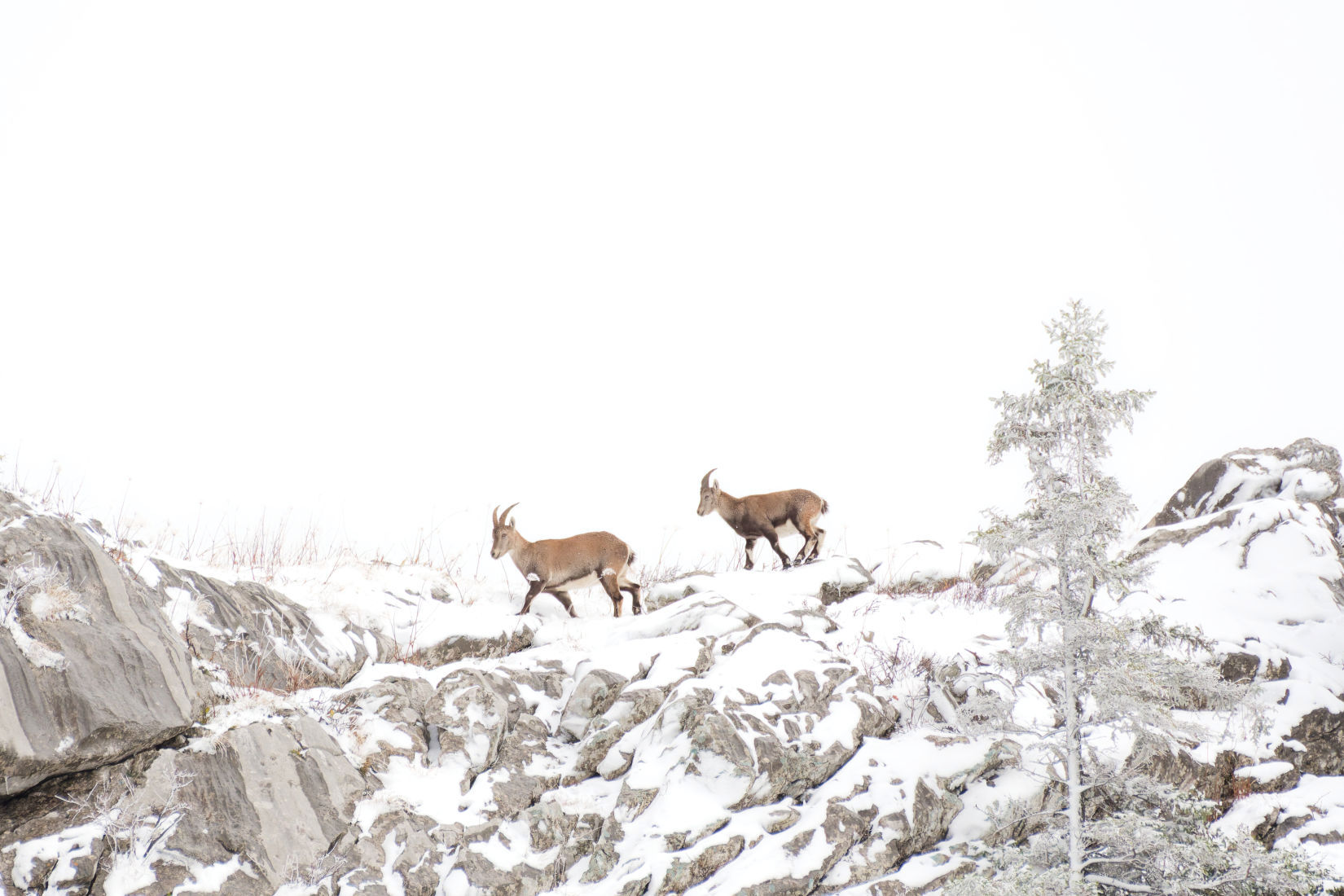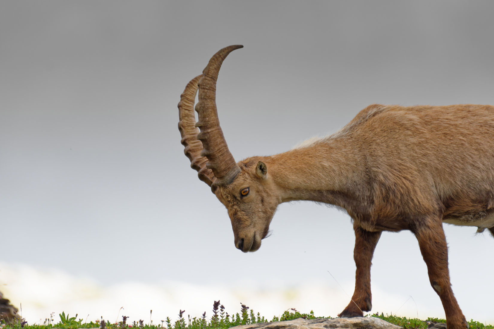 Il y eut deux cornes, courbées comme des arcs, puis lentement, émergeant d’une neige profonde,